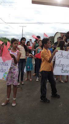 | Caminhada realizada dia 9 de maio com as criança e adolescentes do setor vermelho. Nesta caminhada e a noite na celebração foi lembrado o falecimento do Pe. Edson. |